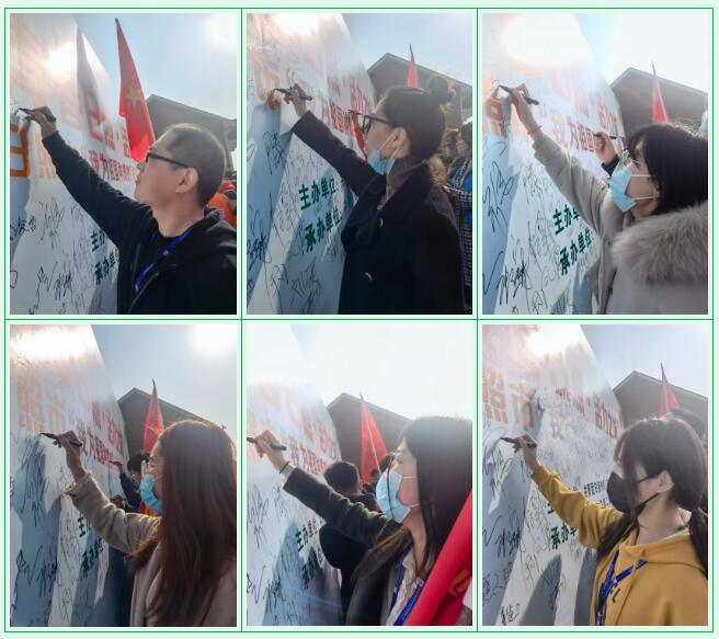 活動(dòng)伊始,主辦方舉行了簽字儀式,參加植樹活動(dòng)的青聯(lián)委員、學(xué)聯(lián)委員、青年文明號(hào)集體、少先隊(duì)、志愿者協(xié)會(huì)等共29支隊(duì)伍代表,400余人在簽名墻上簽名留念。